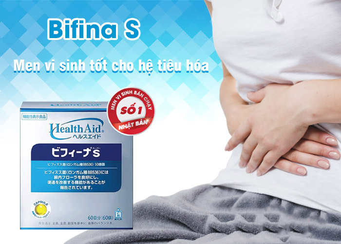 Men vi sinh Bifina S là công thức vượt trội 3 trong 1 gồm lợi khuẩn Bifido, lợi khuẩn Lactobacillus và chất xơ hòa tan - thức ăn cho lợi khuẩn. Công thức này cung cấp một giải pháp toàn diện giúp lợi khuẩn phát triển tốt trong đường tiêu hóa; hỗ trợ giải quyết các rối loạn tiêu hóa, viêm đại tràng và tăng cường chức năng tiêu hóa. Men vi sinh Bifina S là dòng sản phẩm trung cấp với hàm lượng lợi khuẩn lên đến 5 tỉ trong mỗi gói. Dòng này phù hợp để hỗ trợ người lớn có biểu hiện rối loạn tiêu hóa, viêm đại tràng ở mức độ tương đối nặng, kéo dài và lặp đi lặp lại, sản phẩm xuất xứ từ Nhật Bản.