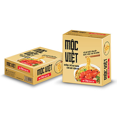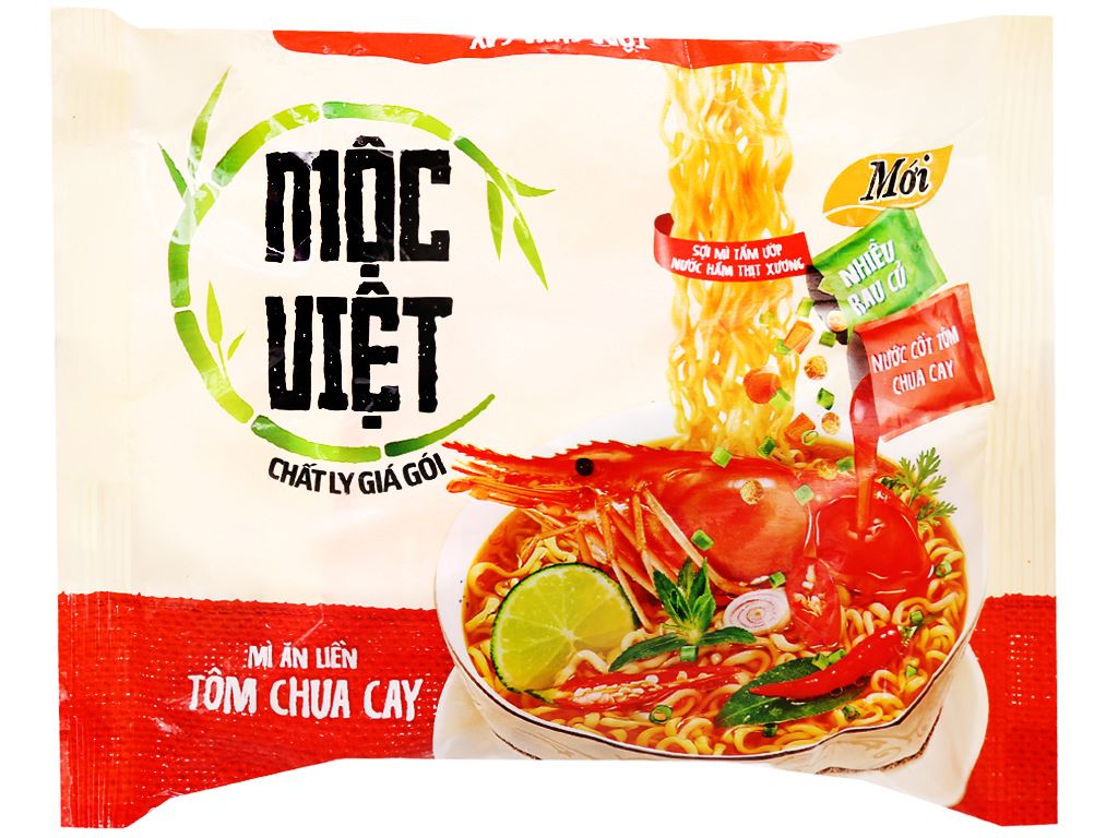 Sợi mì vàng dai ngon tẩm ướp nước mắm thịt xương quyện trong nước súp Mộc Việt vị tôm chua cay đậm đà thơm ngon cùng mùi hương thơm lừng ngất ngây. Mì Mộc Việt tôm chua cay gói 75g tiện lợi lại vô cùng hấp dẫn là lựa chọn hoàn hảo cho những bữa ăn vội vàng nhưng vẫn đủ chất. Với công nghệ hiện đại, Công ty Cổ phần Thực phẩm Á Châu đã cho ra đời sản phảm Mì Mộc Việt với sợi mì được tẩm ướp nước hầm thịt và xương.