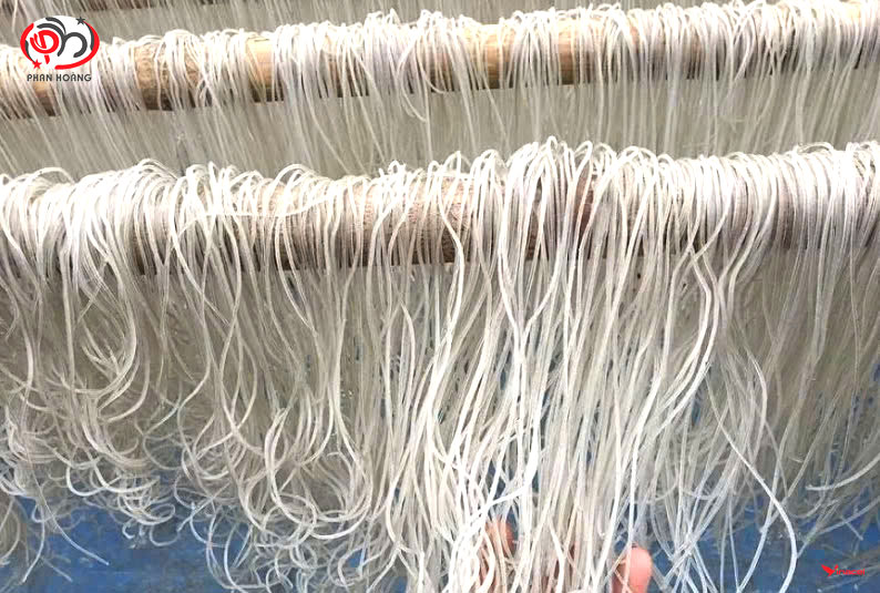 • Bước cuối nhưng cũng không kém phần quan trọng bột ép xong cho những sợi miến ra phên đem phơi ngoài nắng, tránh bụi bẩn. Sợi miến khô thì bó thành các bó nhỏ, đóng vào túi nilon để nơi thoáng mát.