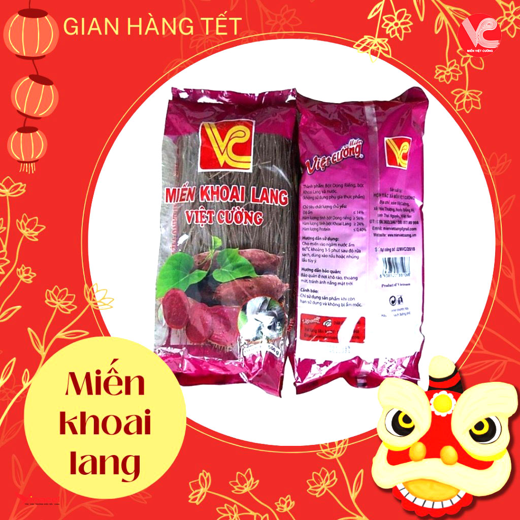 Miến khoai lang Việt Cường đặc sản Thái Nguyên dai ngon không sạn sản xuất tại Hợp tác xã miến Việt Cường – Hóa Thượng – Đồng Hỷ – Thái Nguyên giúp cung cấp năng lượng, vitamin, dưỡng chất cần thiết cho các hoạt động hàng ngày, được chế biến từ củ dong riềng tía ngọt mát của vùng đất Bắc Kạn, khoai lang của các tỉnh Tây Bắc.