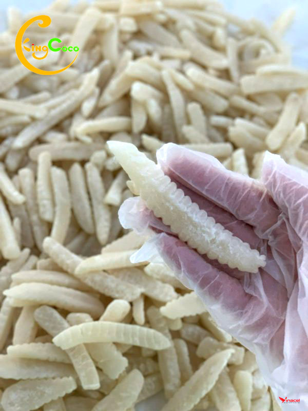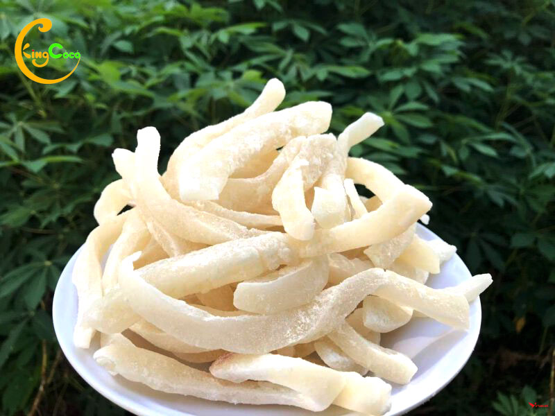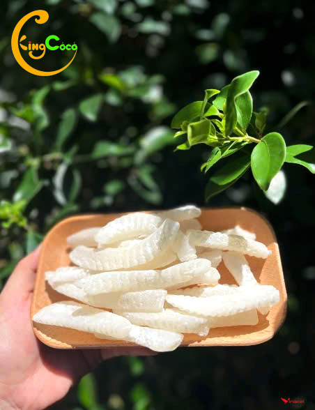 Mứt Dừa Sáp King Coco được làm từ cơm dừa sáp tươi ngon nguyên chất. Vùng đất nổi tiếng với những trái cây ngọt lịm và thơm phức. Qua quy trình sản xuất công phu, cơm dừa sáp được xử lý kỹ lưỡng. Để tạo ra mứt dừa sáp có vị ngọt vừa phải, không bị ngấy.