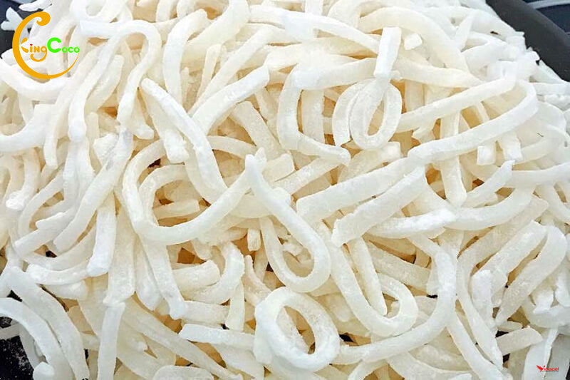• Bước 1: Bạn lấy cùi dừa bỏ hết vỏ rồi nạo dừa theo vòng tròn thành những sợi mỏng.