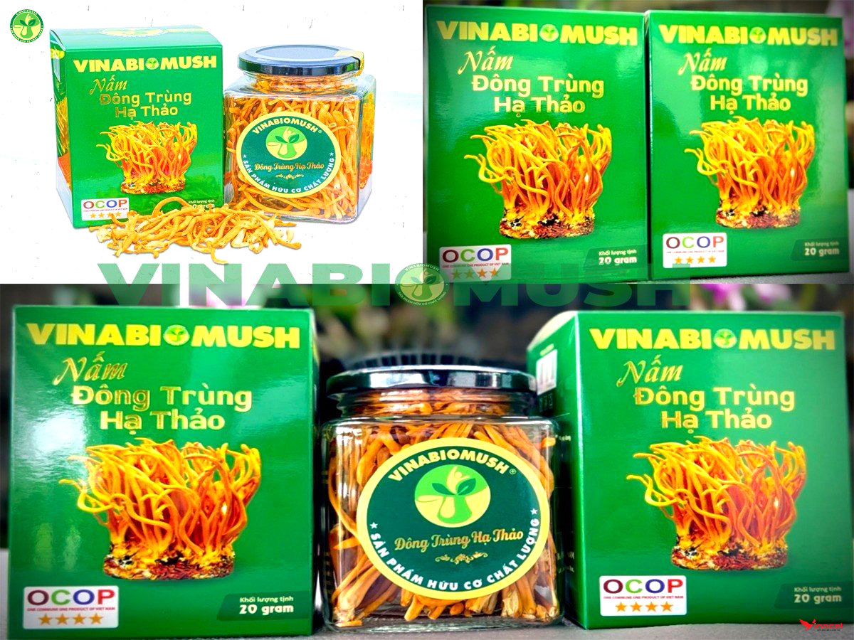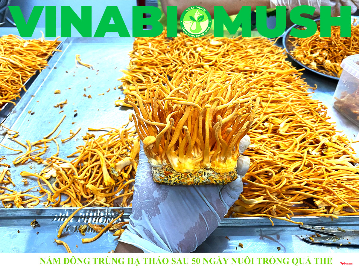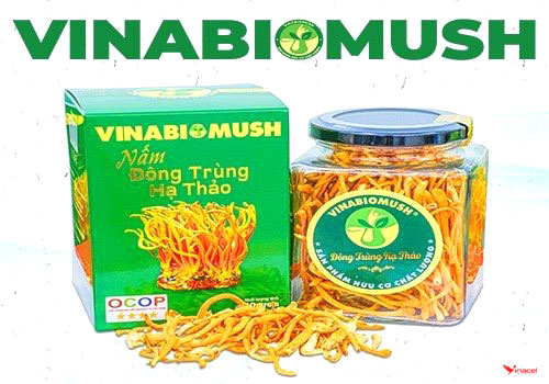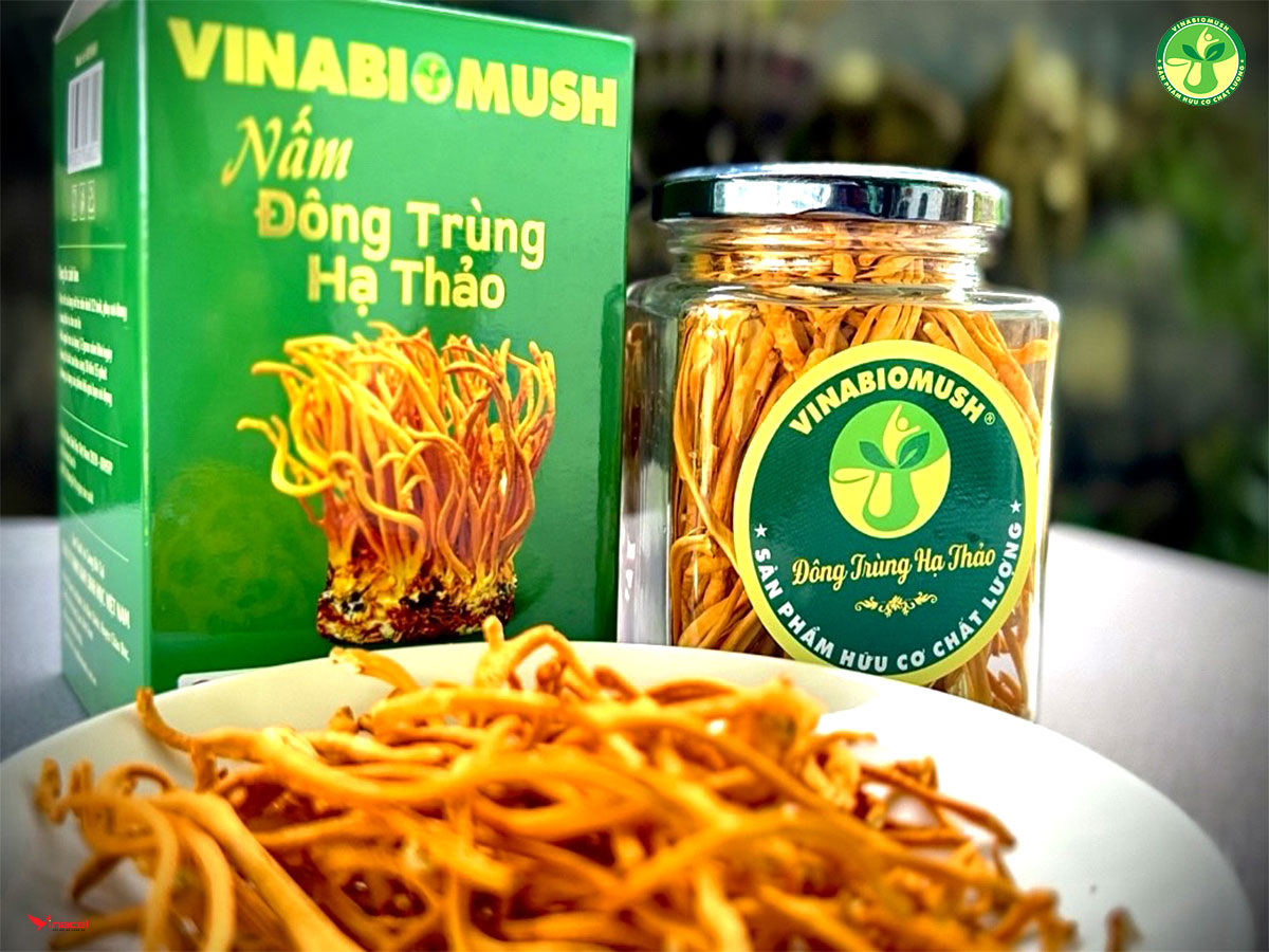 Nấm Đông trùng hạ thảo khô Vinabiomush có màu sắc tươi sáng, mùi vị thơm và đặc trưng bảo đảm an toàn vệ sinh thực phẩm, thời gian sử dụng lâu dài. Vinabiomush ứng dụng kỹ thuật công nghệ sinh học hiện đại để sản xuất nấm Đông trùng hạ thảo theo hướng hữu cơ, nhằm năng cao năng suất và chất lượng của sản phẩm.