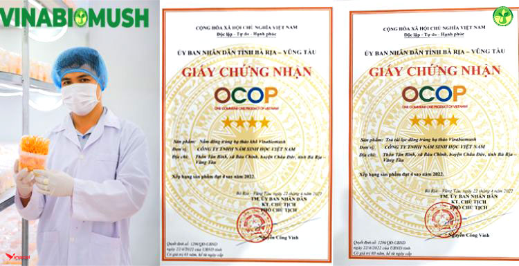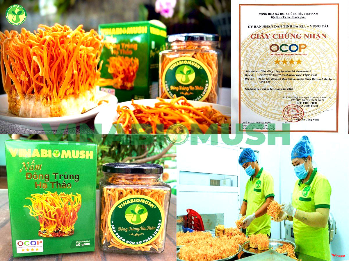 Nấm Đông trùng hạ thảo khô Vinabiomush của Công ty TNHH Nấm sinh học Việt Nam, thôn Tân Bình, xã Bàu Chinh, huyện Châu Đức, tỉnh Bà Rịa-Vũng Tàu đạt chứng nhận OCOP 4 sao của tỉnh tháng 4/2022.