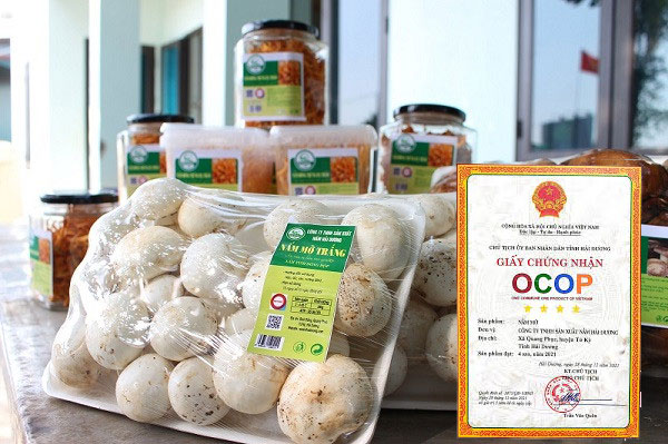 Nấm mỡ trắng là một trong những sản phẩm chính của Công Ty TNHH Sản Xuất Nấm Hải Dương đã được công nhận sản phẩm đạt chuẩn OCOP.