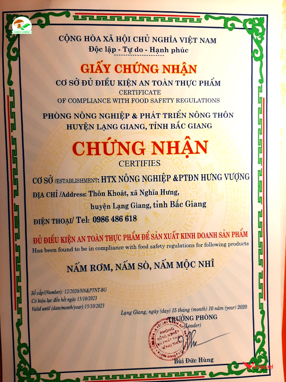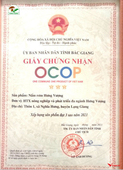 Hưng Vượng 100% nấm rơm tươi, cam kết không sử dụng chất bảo quản, chất kích thích, được cấp phép và kiểm định chất lượng bởi cục An Toàn Thực Phẩm, Bộ Y Tế.
