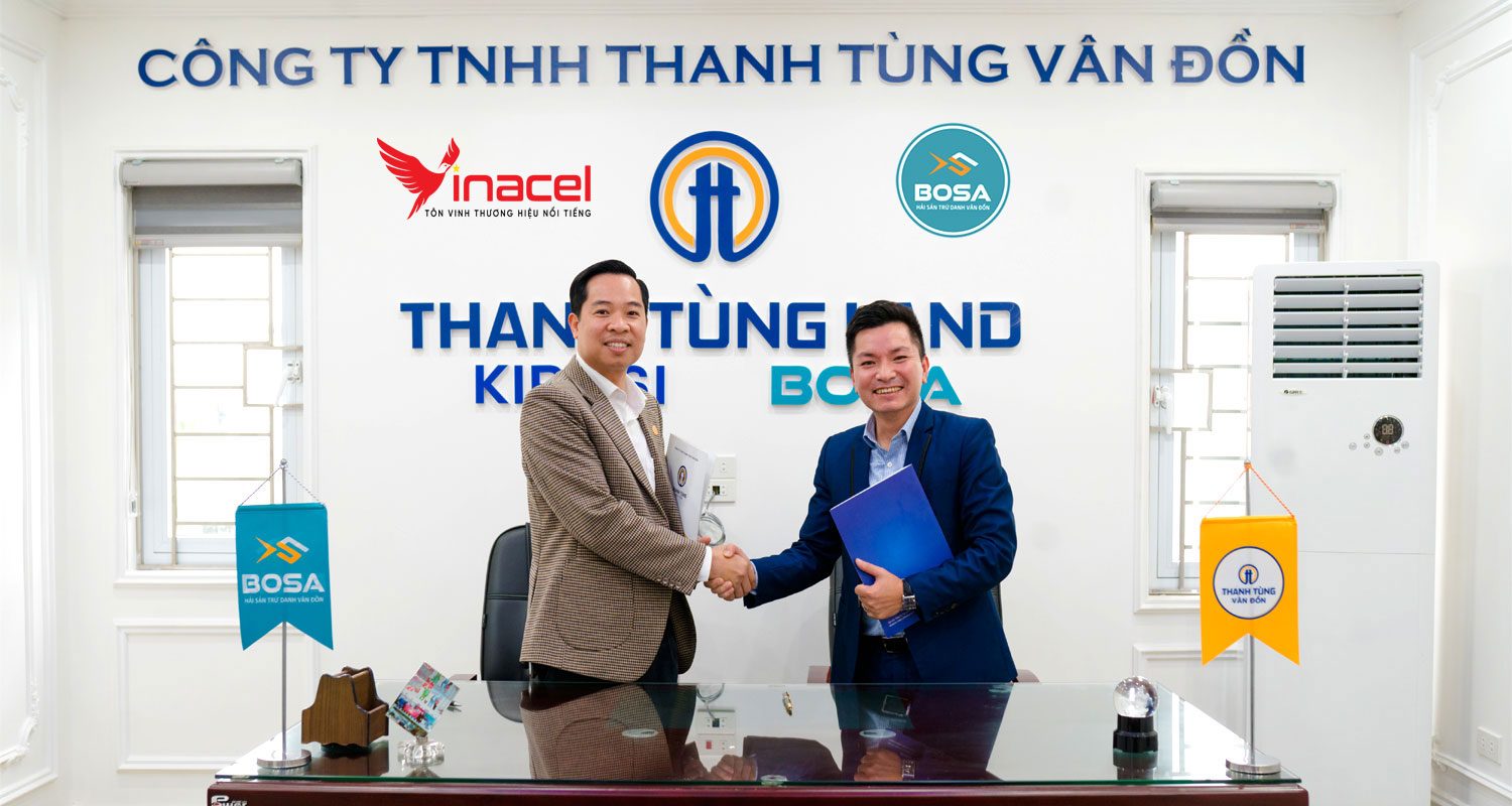Lễ ký kế hợp tác giữa Nhà hàng Bosa Ông Phạm Quang Tùng - TGĐ Công ty TNHH Thanh Tùng Vân Đồn Và Ông Phạm Văn Biển - Tổng Giám Đốc Vinacel