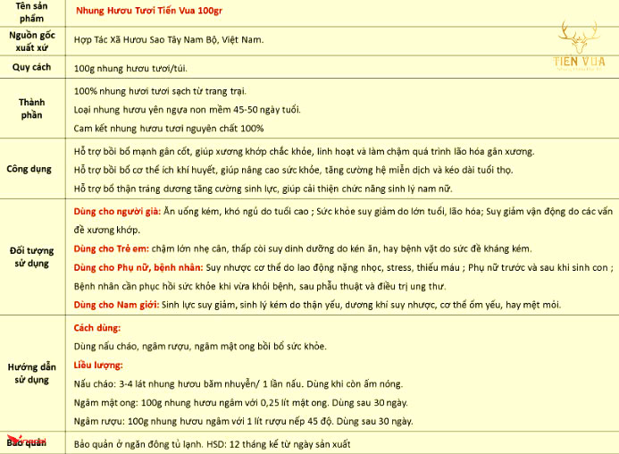 Mô tả sản phẩm Nhung Hươu Tươi Tiến Vua Tây Nam Bộ