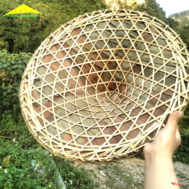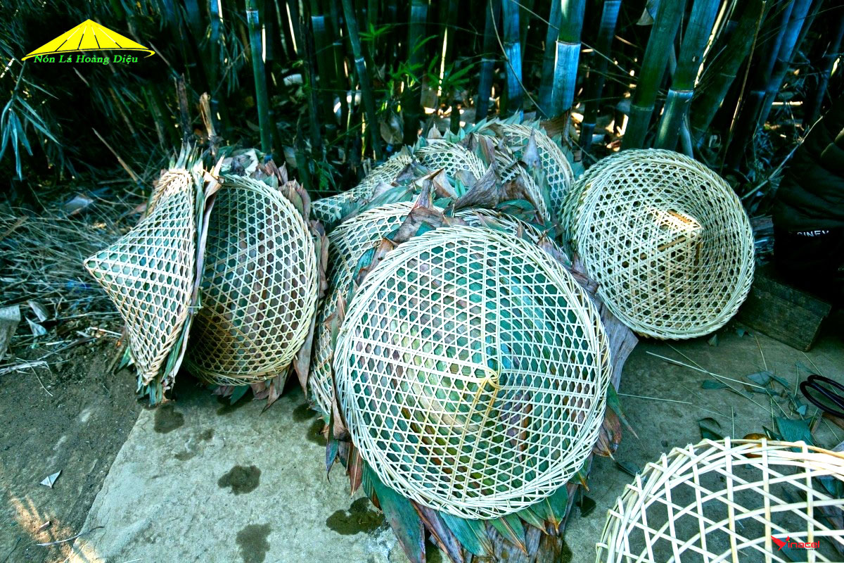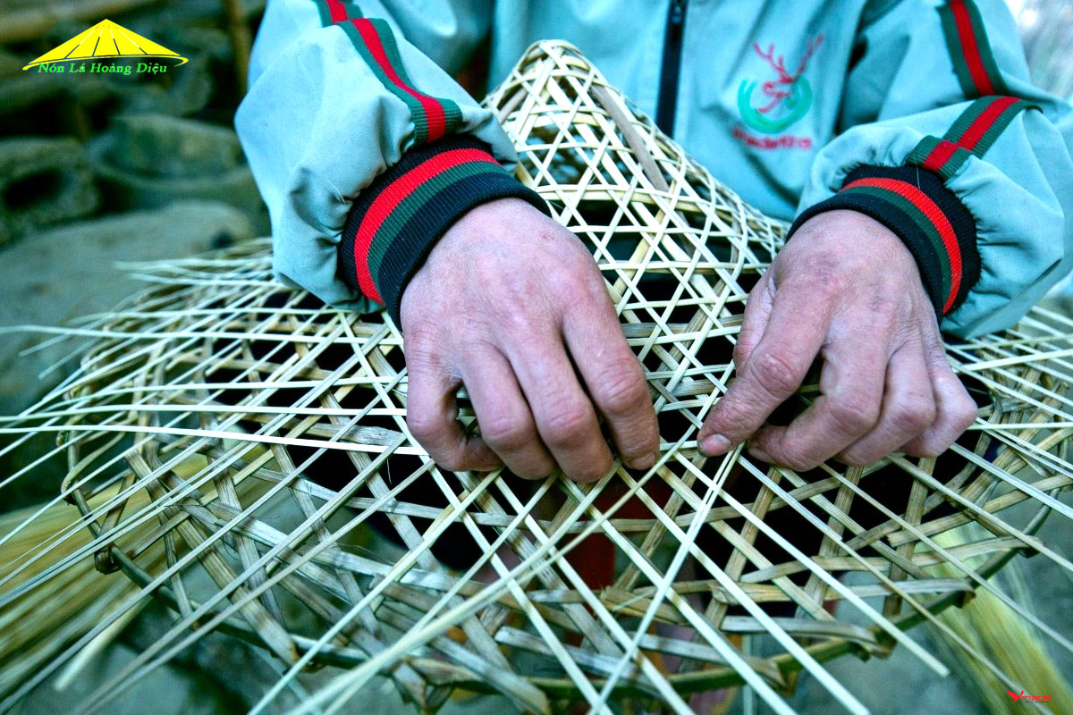 Lớp khung bên ngoài được người thợ đan rất cẩn thận và tỉ mỉ, không để lộ một mấu nối nào ra ngoài, lớp khung này sẽ quyết định tính thẩm mỹ của chiếc nón thành phẩm.