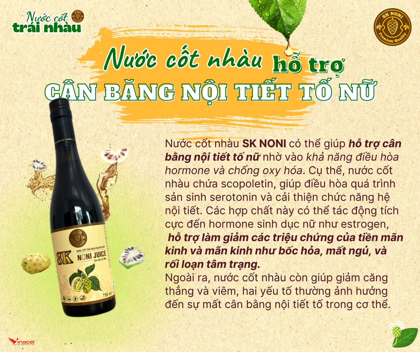 Ngoài việc giúp làm đẹp da, giảm cân an toàn; sử dụng nước cốt trái nhàu giúp chị em phụ nữ ngăn ngừa chứng trầm cảm giai đoạn mãn kinh hay điều hòa kinh nguyệt cho độ tuổi sinh sản.