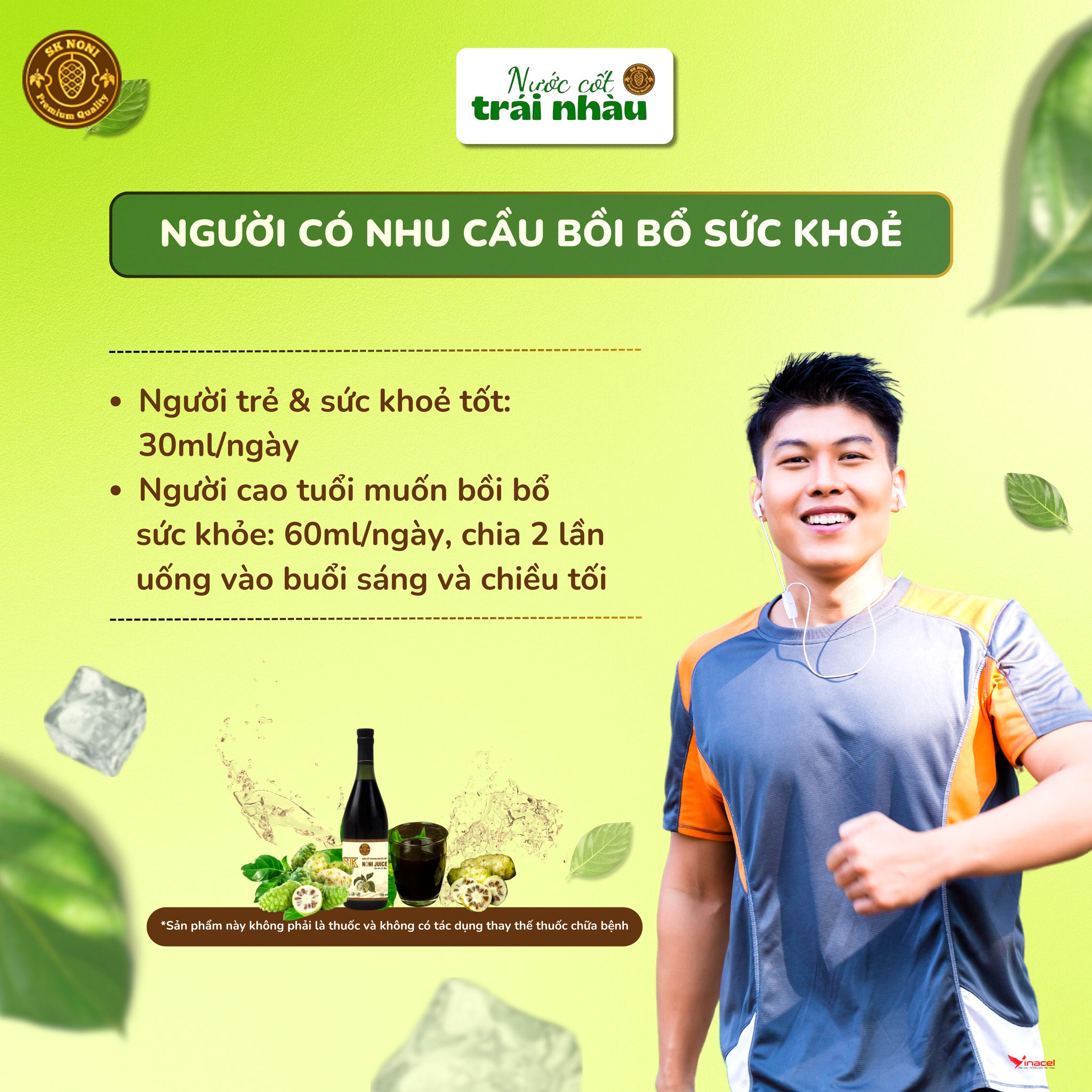 • SK Noni Juice Premium, sản phẩm nước cốt nhàu không phụ gia, không chất bảo quản, không phẩm màu, không hương phụ liệu.