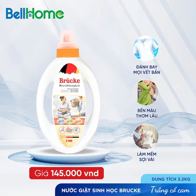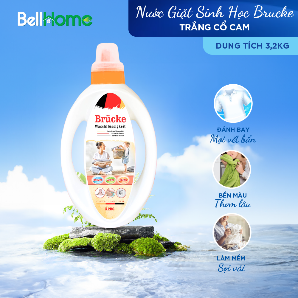 Nước Giặt Brucke 3,2KG - Nước Giặt Công Nghệ Sinh Học Làm Sạch Sâu Các Vết Bẩn Làm Mềm Sợi Vải, Lưu Hương Nước Hoa.