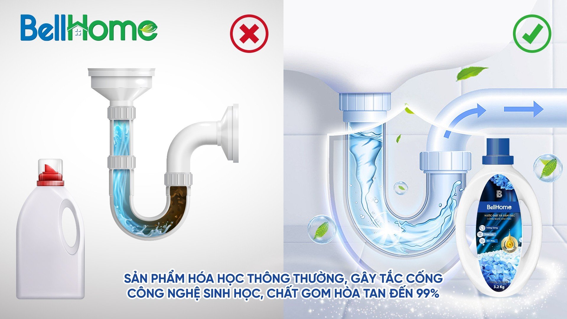 Thêm nữa, Nước giặt công nghệ sinh học Bell Home không gây tắc đường ống cống như các sản phẩm hóa học thông thường vì chất gom còn lại sẽ bị hòa tan đến 99% nhờ công nghệ sinh học. Qua đó, bạn hoàn toàn có thể sử dụng nước thải sau khi giặt quần áo để tưới cây, tưới rau,…