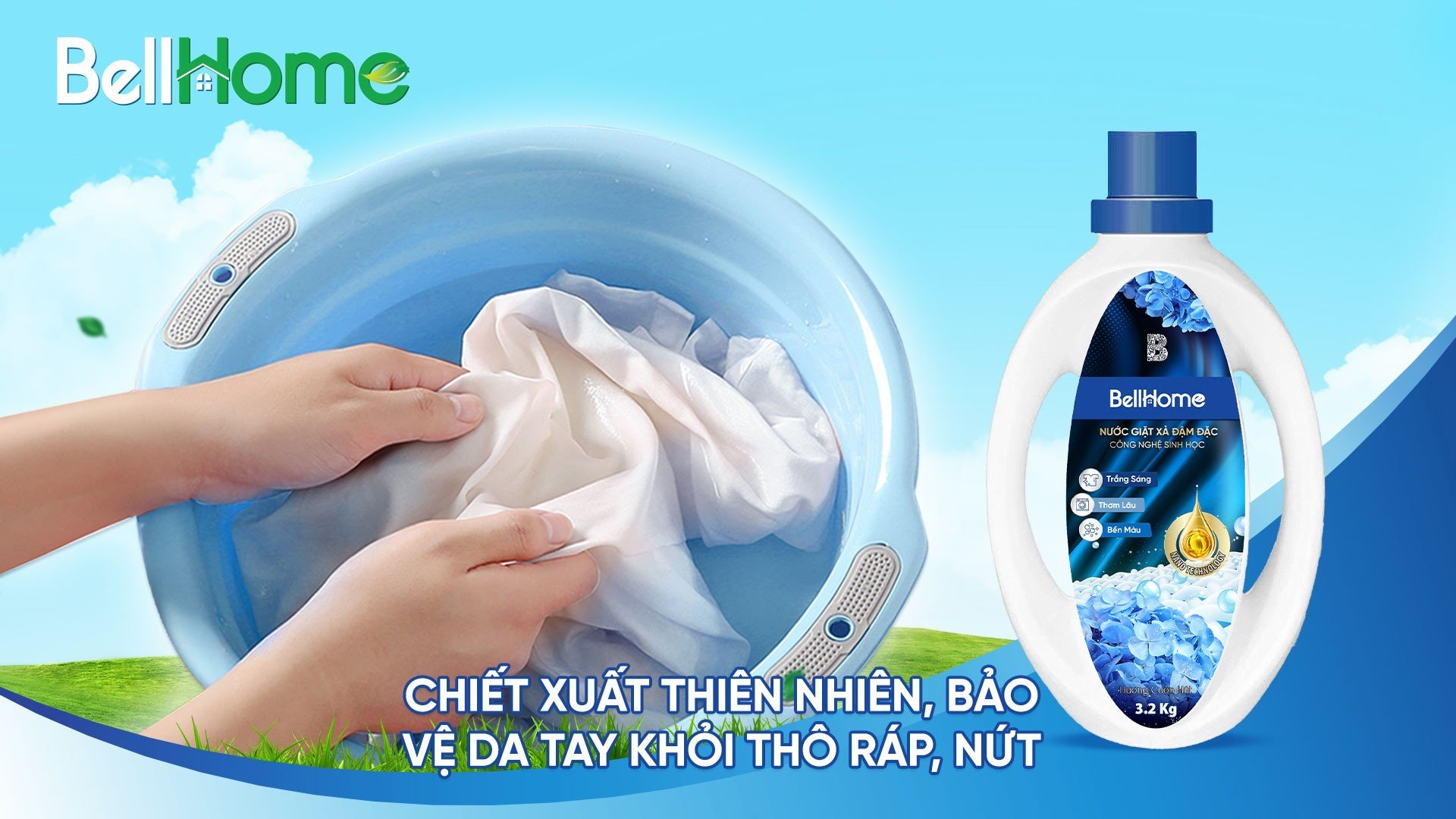Nước giặt sinh học Bell Home - Đánh bay mọi vết bẩn, an toàn tuyệt đối, bảo vệ da tay