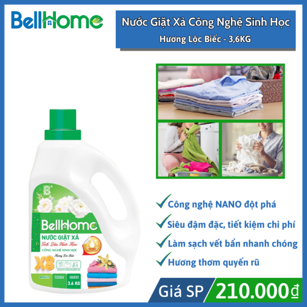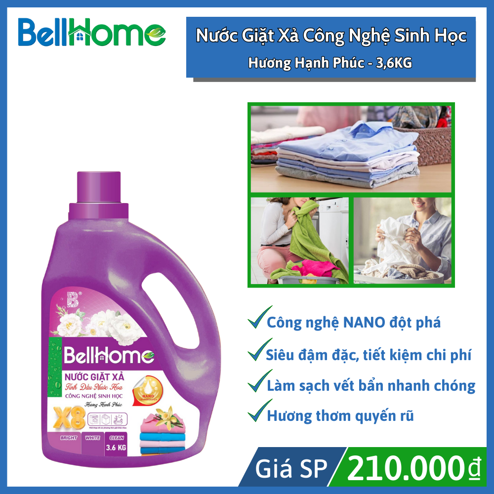 Nước giặt khác có thể làm sạch quần áo bằng chất tẩy, hiệu quả rất nhanh nhưng về lâu dài sẽ làm hỏng sợi vải. Nhưng đối với nước giặt xả công nghệ sinh học Bell Home sử dụng các nguyên liệu chiết xuất thiên nhiên với công dụng làm sạch cao. Đồng thời trong quá trình sản xuất sản phẩm cũng ứng dụng công nghệ enzyme bóc tách chất bẩn nên đem lại khả năng làm sạch sâu, loại bỏ các vết bẩn cứng đầu hiệu quả làm sạch tức thì, không tốn công sức. Nhờ áp dụng công nghệ nano, chất bẩn sẽ được gom lại một góc trong nước khi giặt giúp tránh loang bẩn, bám bẩn trở lại.
