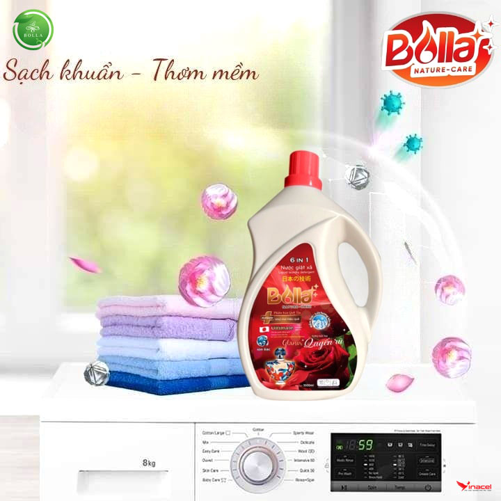 Nước giặt Bolla không chỉ đơn thuần thấm sâu vào từng chất vải. Làm sạch mọi đồ dùng, loại bỏ nhiều vi khuẩn có hại ảnh hưởng nghiêm trọng sức khỏe. Mà còn lưu giữ được hương thơm khiến tinh thần thoải mái. Tự tin giao tiếp với người đối diện. Ngoài ra, mỗi khi sử dụng nước giặt chuyên dùng cho máy thì tránh được tình trạng bị vón cục. Cặn đọng gây trầy xước loang lổ bề mặt vải. Nước giặt có độ tạo bọt ít hơn bột giặt hạn chế bị trào bọt qua nắp. Máy giặt không phải gồng mình làm việc với công suất cao, kéo dài tuổi thọ lâu hơn