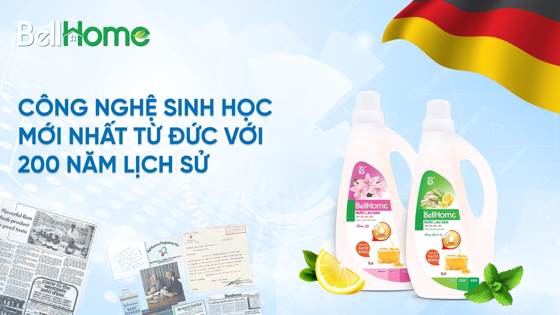 Công thức nước lau sàn công nghệ sinh học Bell Home l là công thức từ Viện hóa học Đức, được căn chỉnh để phù hợp nhất với khí hậu và cơ địa của người Việt Nam. Đức là đất nước với nền hóa học đi đầu thế giới. Nước lau sàn công nghệ sinh học Bell Home không những gây ấn tượng ban đầu bởi hương thơm, sự mềm mại trên quần áo mà còn giữ người tiêu dùng ở lại vì tính kinh tế, an toàn và hiệu quả của sản phẩm.