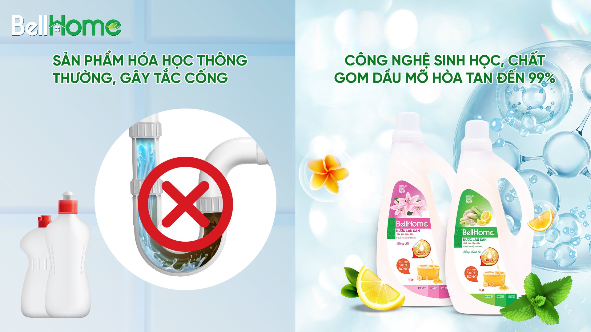 Nước lau sàn công nghệ sinh học Bell Home chính là lựa chọn tốt nhất để giúp ngôi nhà của bạn luôn sạch sẽ, thơm tho và đảm bảo an toàn với mọi làn da.