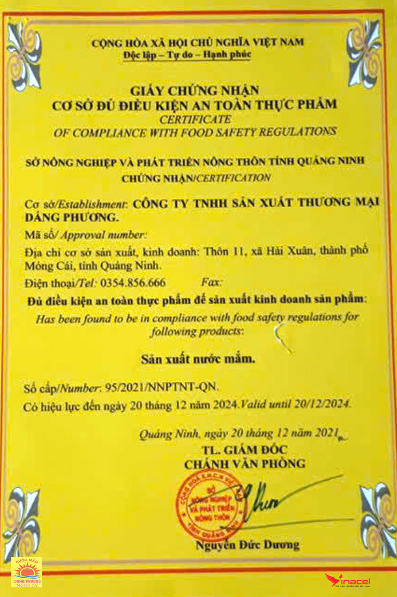Bằng tình yêu với biển, bằng tâm nguyện, ước mơ làm sống lại một nghề truyền thống, Ông Phương mạnh dạn thành lập Công ty TNHH Sản xuất Thương mại Dáng Phương, sản xuất, đưa ra thị trường hàng ngàn lít nước mắm sá sùng, nước mắm cốt cá cao đạm mang đậm hồn cốt, dư vị nước mắm truyền thống Móng Cái và bước đầu đã được thị trường đón nhận nồng nhiệt. Sản phẩm nước mắm Móng Cái của công ty cũng đã được công nhận sản phẩm OCOP Móng Cái đạt tiêu chuẩn 4 sao.