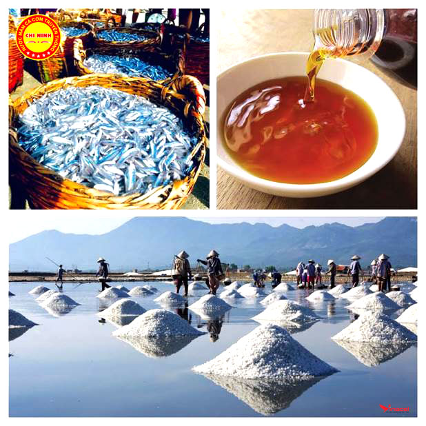 Một nguyên liệu khác không thể thiếu khi chế biến nước mắm là muối, muối Cà Ná là loại muối khô, kết tinh cao (hình dáng to, cấu trúc rõ ràng, mặt cắt sắc tựa kết cấu của kim cương, với hàm lượng tạp chất thấp). Muối Cà Ná được xem là loại muối tốt nhất Đông Nam Á với tỉ lệ Clorua Natri (muối nguyên chất) lên tới 95% rất thuận lợi cho chế biến nước mắm.