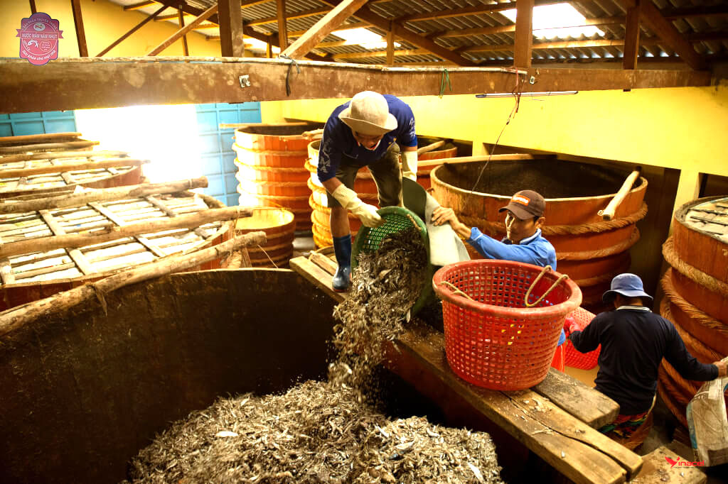 Cá cơm sau khi được đánh bắt sẽ được sơ chế kỹ lưỡng, loại bỏ tạp chất và đem đi ủ cùng với muối trong những thùng gỗ lớn. Quá trình ủ diễn ra trong thời gian dài, đòi hỏi sự tỉ mỉ và kinh nghiệm của các người thợ làm mắm. Qua thời gian, cá cơm sẽ tự phân hủy, tạo ra nước mắm có màu vàng óng ánh, hương thơm đặc trưng và vị mặn ngọt hài hòa.