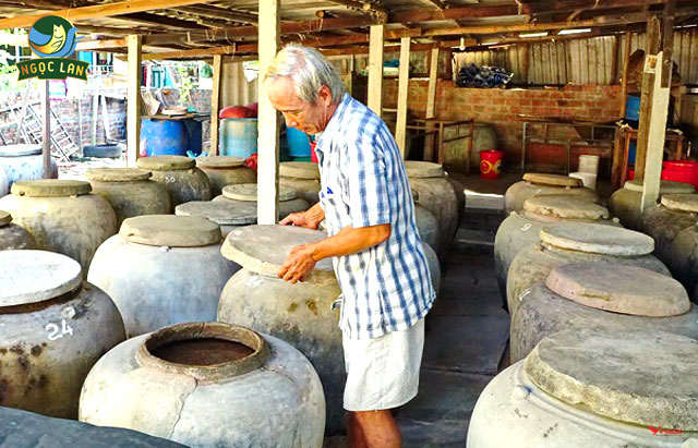 “Để tạo ra nước mắm ngon đầu tiên phải chọn cá tươi, đều, vừa, không to quá cũng không nhỏ quá, sau đó phải chọn muối. Muối chọn hạt vừa, trắng, sạch thì nước mắm mới ngon rồi trộn đều với muối sau đó ủ vào chum, thời gian ủ từ 10 đến 12 tháng sẽ chuyển qua màu cánh gián thì khi ấy những mẻ nước mắm đầu tiên sẽ được mang ra chắt lọc và đưa vào chai thủy tinh loại chai từ 350ml đến 500ml, rồi cho vào máy đóng nắp và đưa vào đi tiêu thụ trên thị trường”.