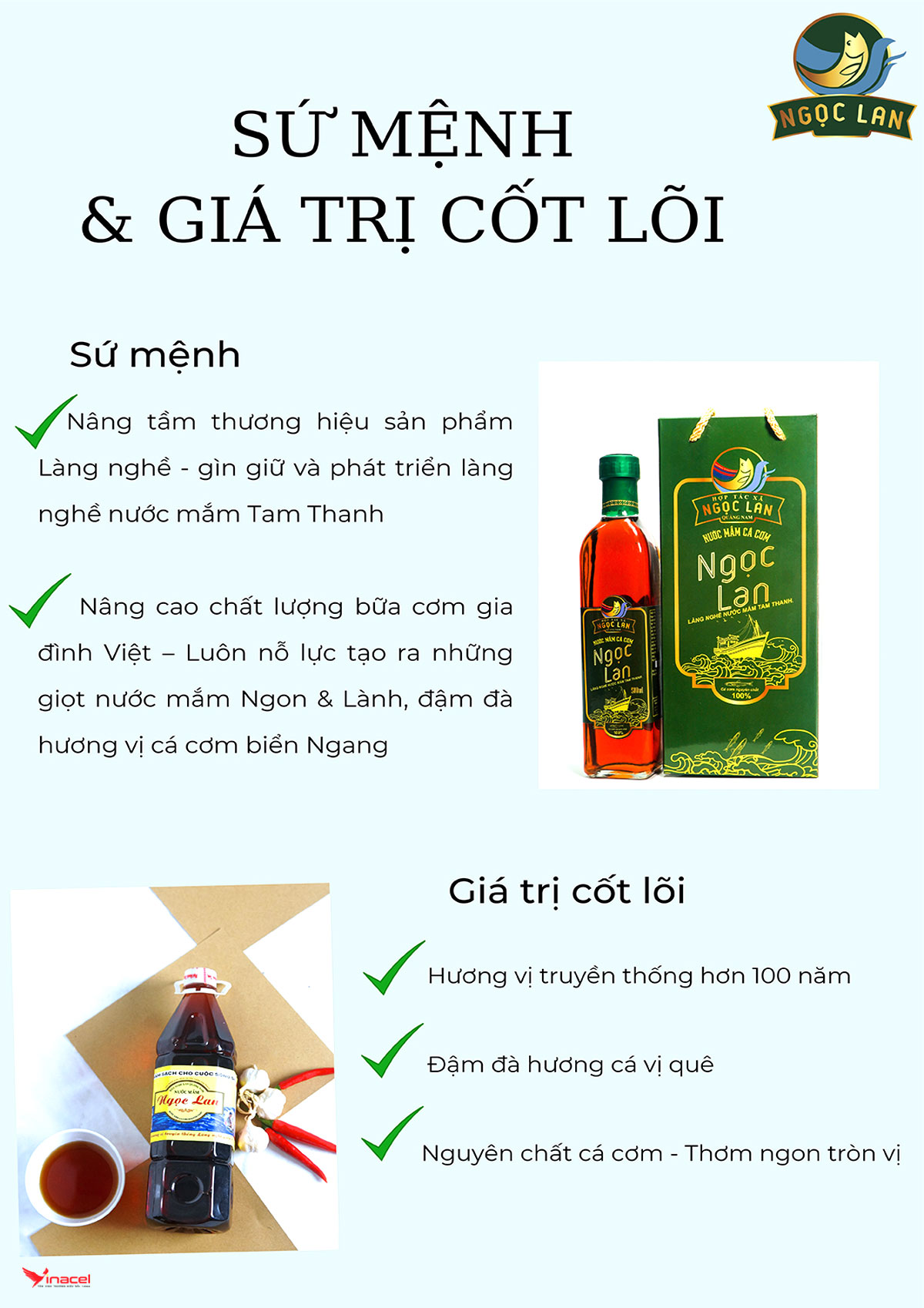 Hãy thử dùng nước mắm cá cơm Ngọc Lan, bạn sẽ say với mùi thơm lừng của hương vị cá cơm biển Ngang, nghiện cái vị mặn đậm đà, ngọt hài hòa hậu vị, mê những giọt nâu vàng sóng sánh như là sự chắt tinh của hương biển. Tôi đảm bảo bạn chỉ cần thử là ghiền. Hãy để chúng tôi làm thăng hoa các món ăn của bạn.