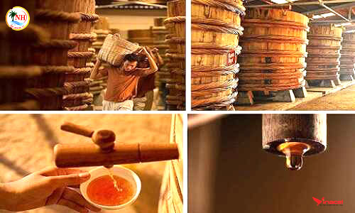 Nước mắm truyền thống được ủ chượp từ các cơm than và muối, là gia vị không thế thiếu trong bữa cơm của mọi gia đình
