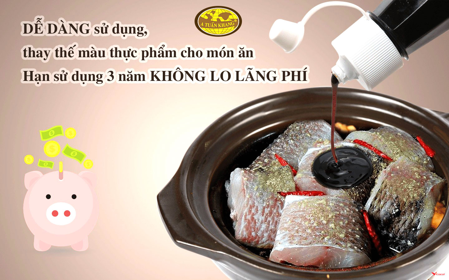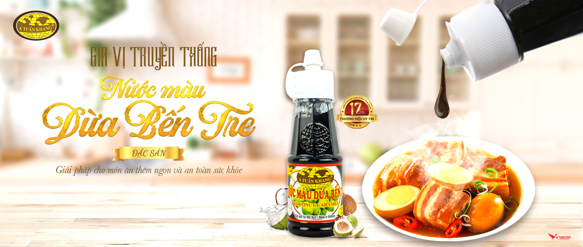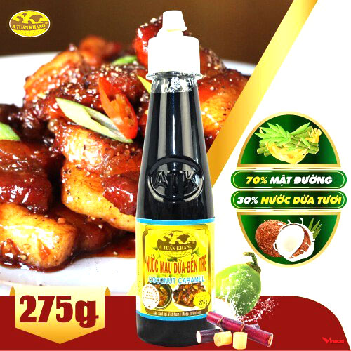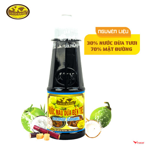 Tuy Nước màu Bến Tre được sản xuất chỉ từ 30% nước dừa tươi và đến 70% mật đường nhưng vẫn đảm bảo được độ béo, ngọt và thơm ngậy từ dừa. Đảm bảo tạo nên hương vị thơm ngon, dậy mùi thức ăn. Màu hấp dẫn, mắt đẹp giúp kích thích giác quan. Ngoài ra, Nước Màu Bến Tre A Tuấn Khang còn thay thế màu thực phẩm để làm các loại bánh flan..., tương đen, bổ dưỡng cafe.