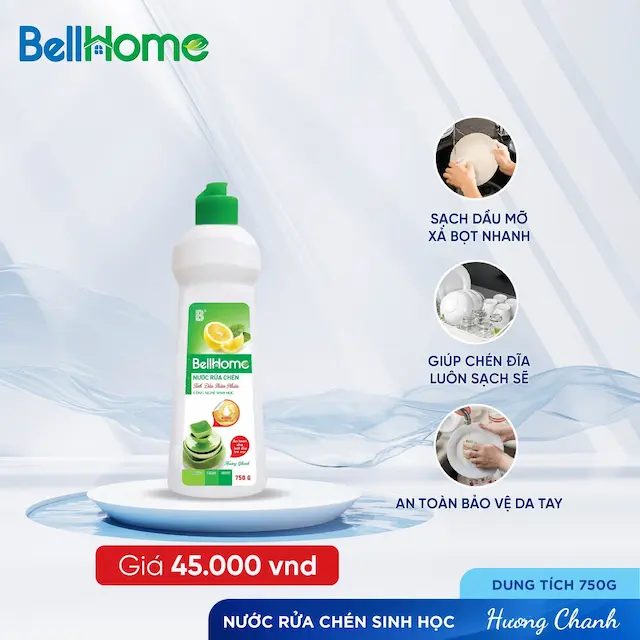 Nước Rửa Chén Công Nghệ Sinh Học Bell Home 750G Hương Chanh - Nước Rửa Bát Công Nghệ Sinh Học Khử Sạch Vết Bẩn, An Toàn Lành Tính Cho Da Tay.