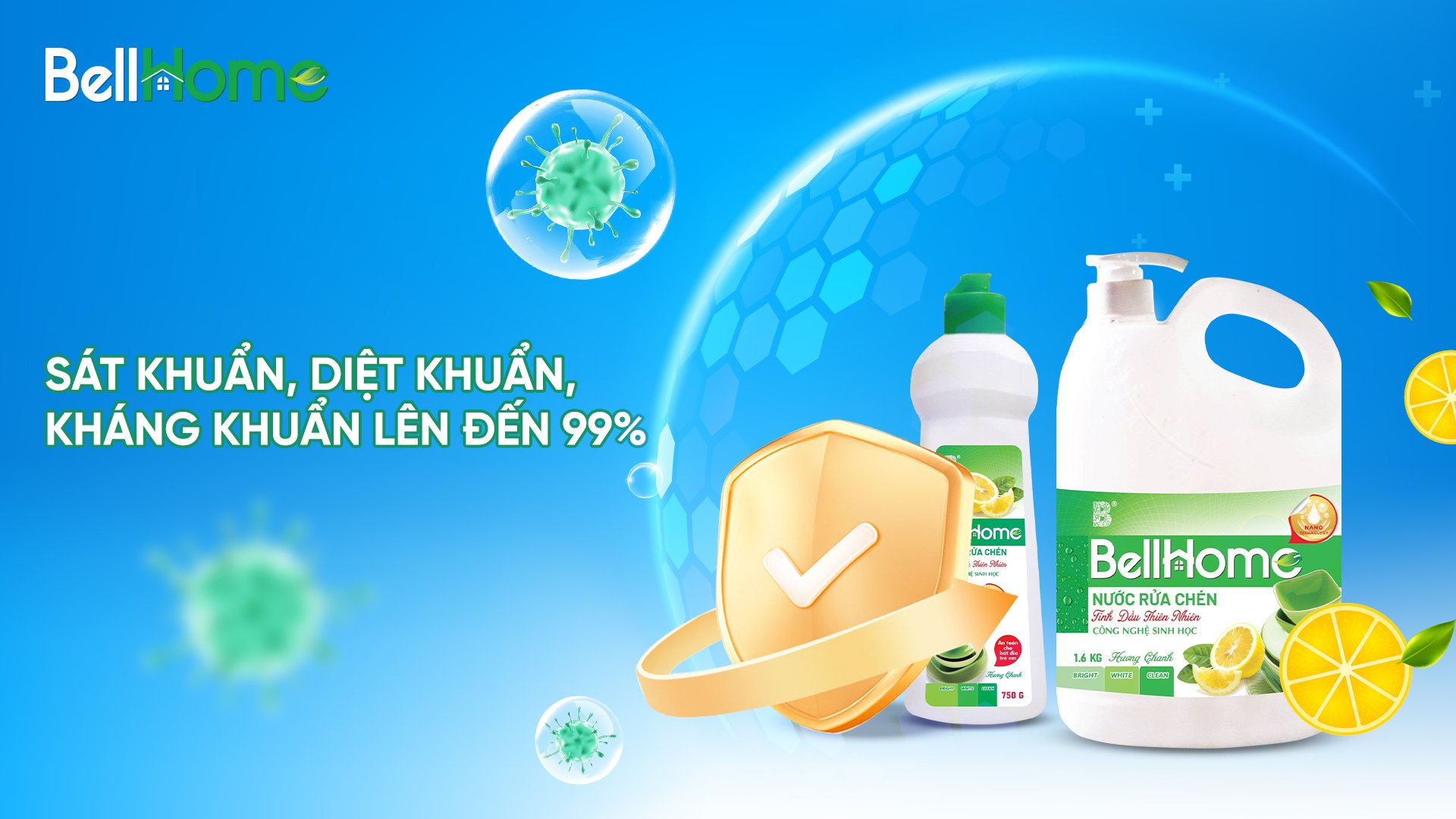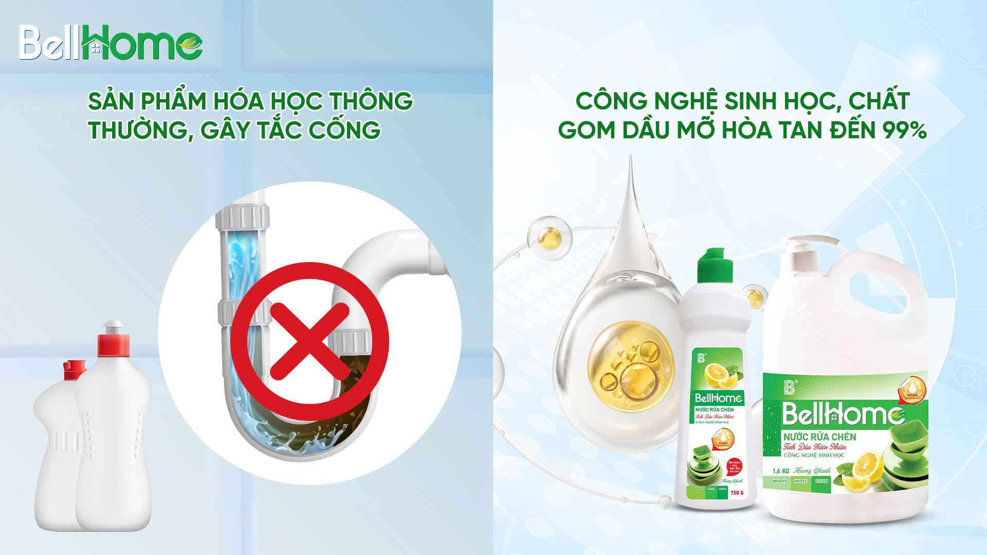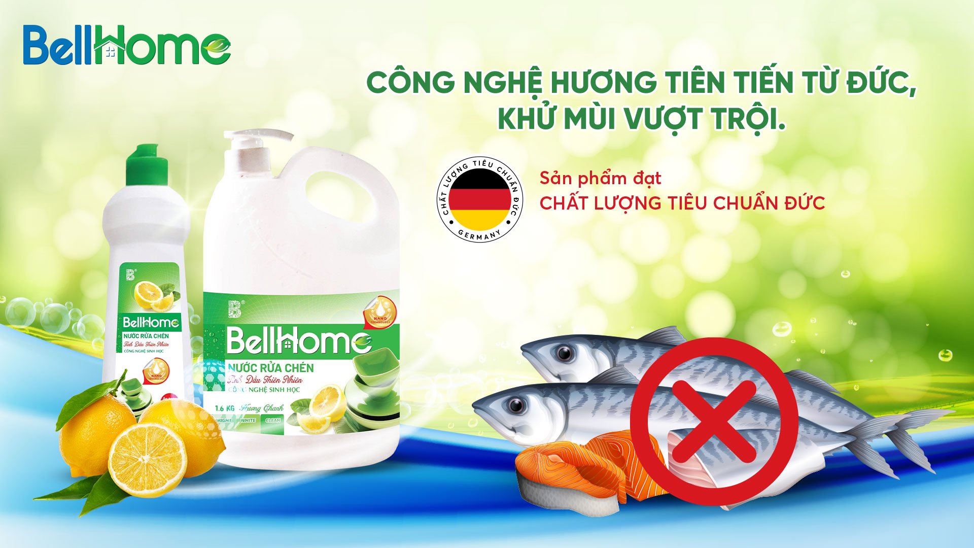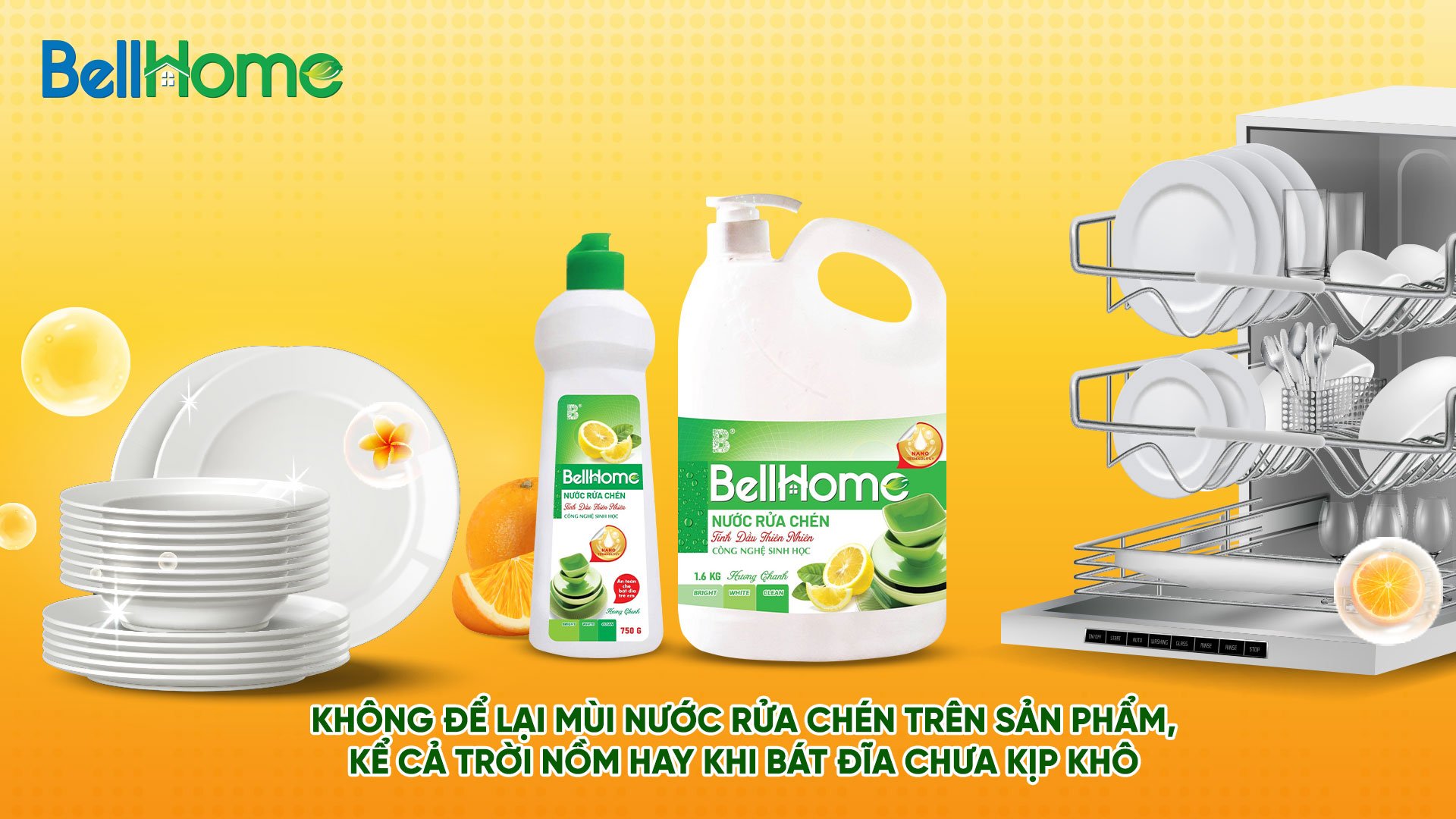 Công nghệ sinh học được Bell Home áp dụng trong nước rửa chén đó chính là công nghệ enzym sử dụng enzym là chất hoạt động bề mặt có khả năng bóc tách các vết bẩn nhanh chóng giúp loại bỏ mọi vết bẩn, dầu mỡ, mùi hôi khó chịu ở trên chén bát. Bên cạnh đó, sản phẩm được bổ sung tinh chất thảo dược giúp ngăn ngừa dầu mỡ bám dính trở lại mà không để lại mùi lạ, độ nhờn trên đồ vật sau khi làm sạch.