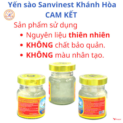 Nước yến sào Sanvinest Khánh Hòa có giá trị dinh dưỡng cao, hoàn toàn không sử dụng chất bảo quản, thích hợp với mọi độ tuổi. Nước Yến sào Sanvinest Khánh Hòa đảm bảo quản lý theo hệ thống chất lượng quốc tế ISO 9001:2015, ISO 14001:2015, ISO 22000: 2018, HACCP.