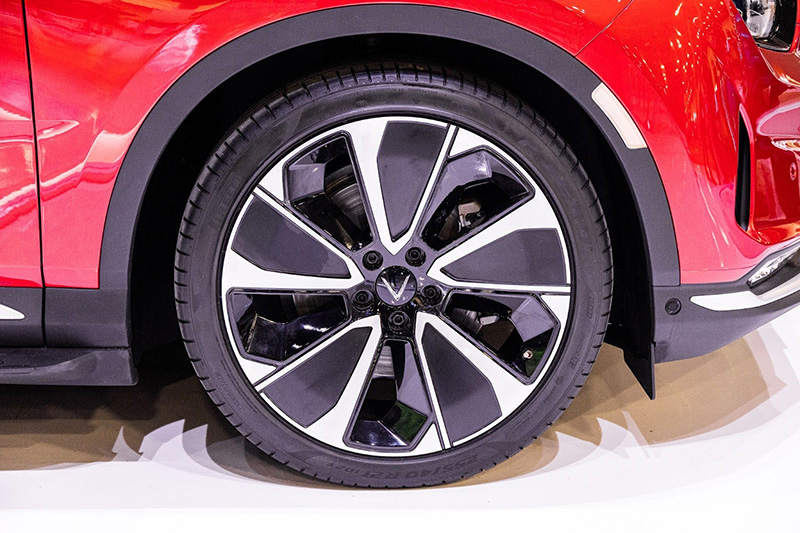 Điểm nổi bật trong thiết kế của VinFast VF 8 ở góc nhìn ngang là đường gân sắc sảo trên cửa trước, nhấn mạnh vẻ ngoài nam tính, thể thao của anh chàng này. Trong khi đó, viền cửa sổ và các vòm bánh xe được thiết kế tinh tế, mang đến ấn tượng thanh lịch cho thân xe. Lấp đầy các vòm bánh xe là bộ mâm hợp kim đa chấu diamond cut.