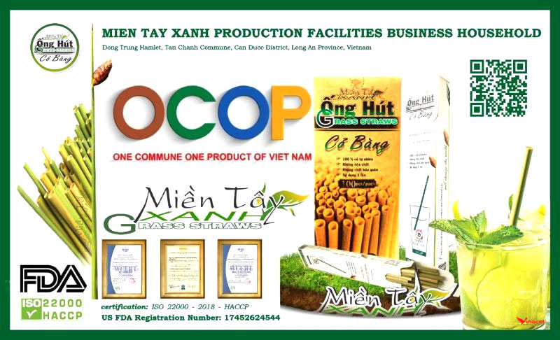 • OCOP Long An ống hút cỏ bàng ống hút thân thiện với môi trường sản phẩm OCOP 3 sao sản phẩm OCOP