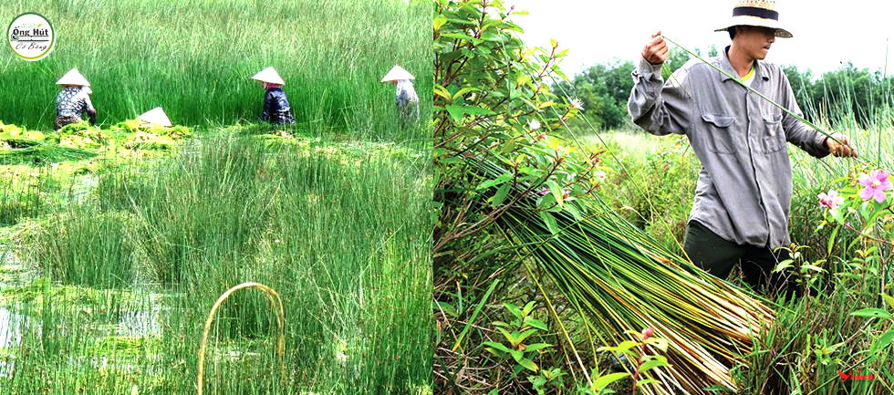 • Bước 1: Thu hoạch cỏ bàng để làm ống hút. Nên ưu tiên chọn cây khoảng 2 năm tuổi để tăng độ cứng cho ống hút. Không nên chọn cây còn non, khó chế biến và sử dụng.