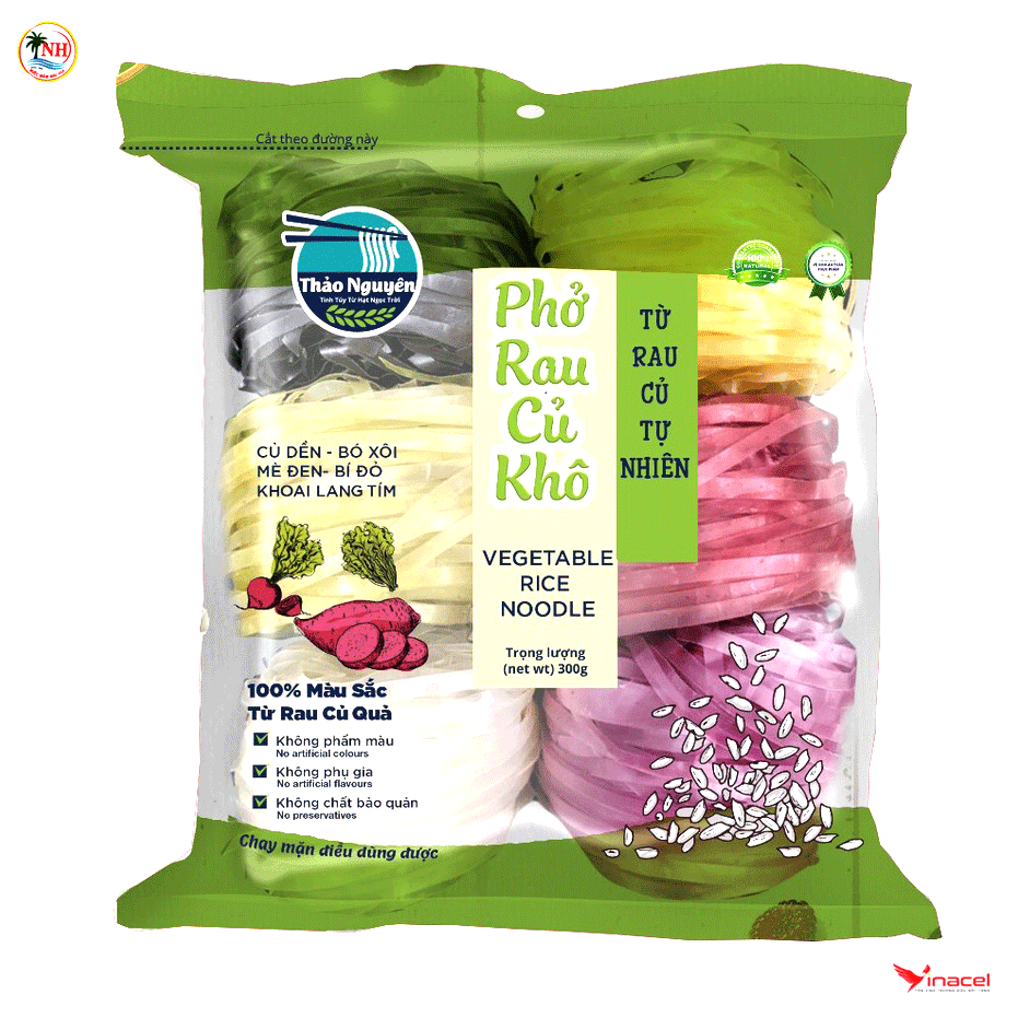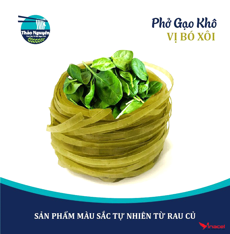 Bí đỏ, rau ngót, nghệ, thiên lý, cải bó xôi, gạo lứt,… là những loại rau củ vô cùng quen thuộc trong bữa ăn gia đình, nay lại được sáng tạo dưới dạng phở khô để đa dạng món ăn trong từng gian bếp Việt. Người nội trợ có thể biến tấu thành các món như: phở xào, phở nước, làm các món cuốn vô cùng thanh mát, dễ ăn, màu sắc hấp dẫn, kích thích vị giác. Đây là sản phẩm vô cùng thích hợp cho những người cao tuổi và các bé nhỏ kén ăn, lười ăn rau.