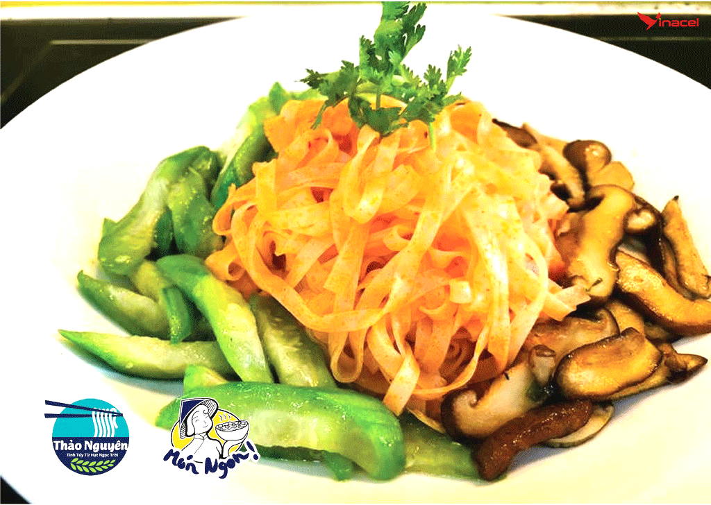Bún, Phở, Mì gạo… rau củ là sự kết hợp hài hòa hương vị tự nhiên của các loại rau củ, trái cây dân dã, quen thuộc như rau ngót, bí đỏ, nghệ, khoai lang, rau thiên lý, cải bó xôi, gạo lứt, thanh long, chùm ngây,… vào trong từng sợi bún, phở, mì gạo, bánh tráng Việt Nam đã tạo nên làn sóng ẩm thực độc đáo, mới lạ, được nhiều người ưa chuộng.