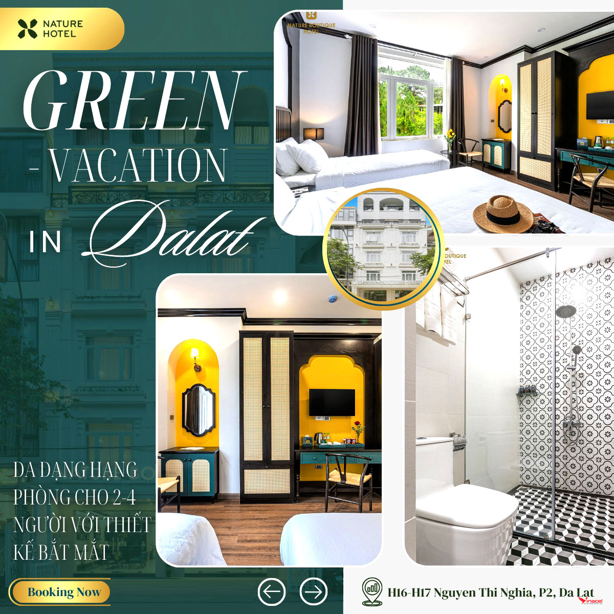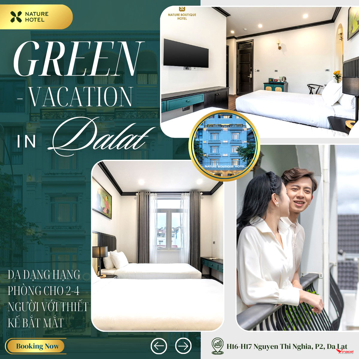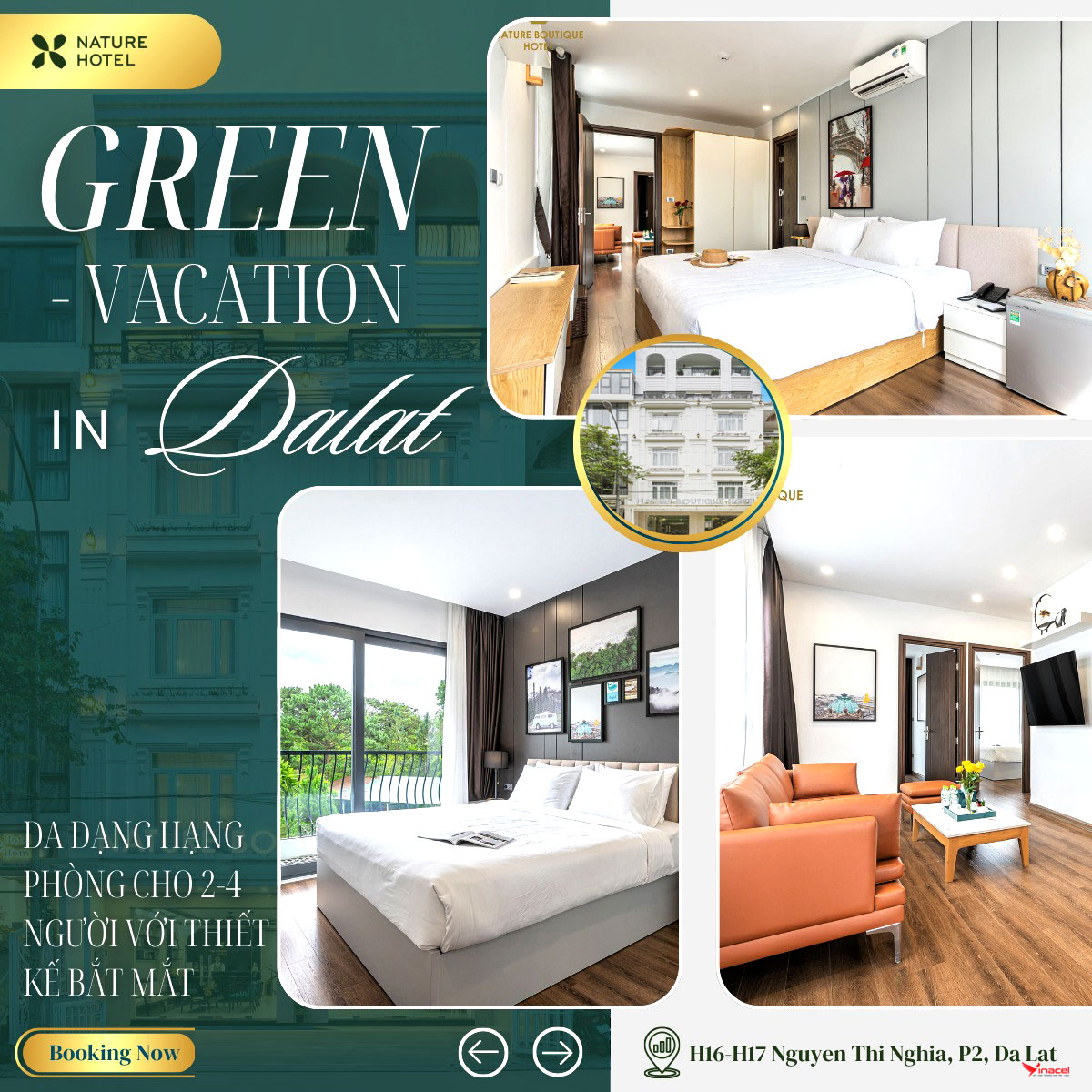 Đến với Nature Hotel, bạn sẽ ngay lập tức cảm nhận được sự hòa quyện giữa thiên nhiên và hiện đại. Nằm giữa lòng Đà Lạt thơ mộng, khách sạn như một khu vườn bí ẩn với cây cỏ xanh mướt, những con đường nhỏ uốn lượn giữa hàng cây, mang đến không gian nghỉ dưỡng trong lành và tĩnh lặng.