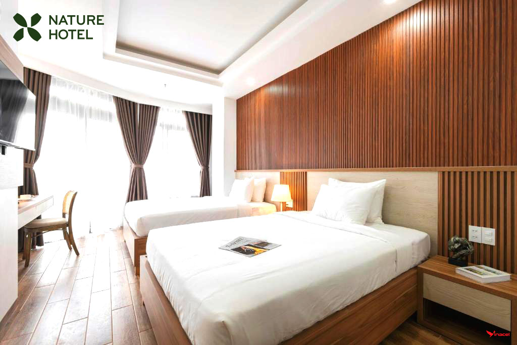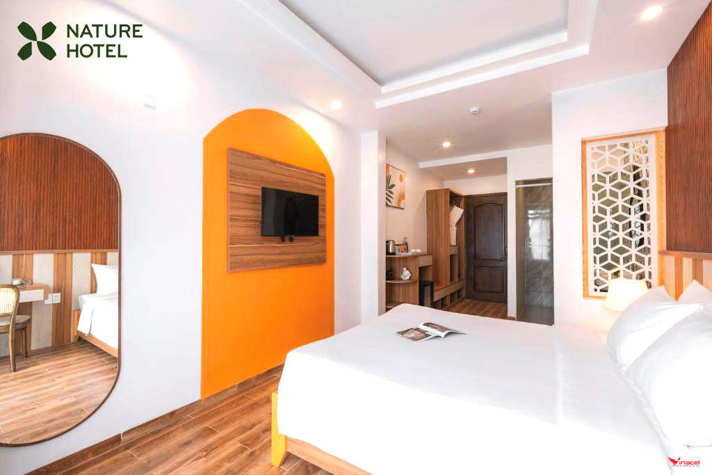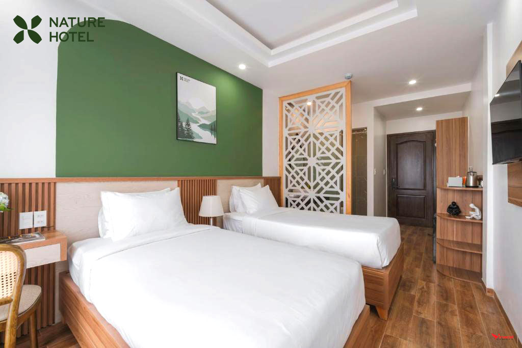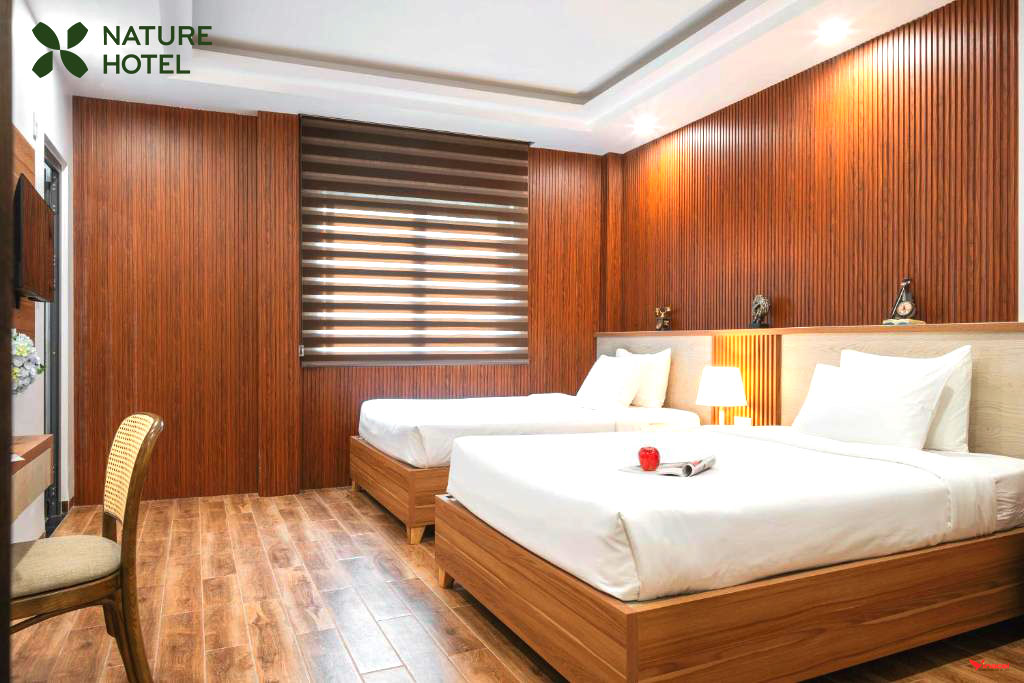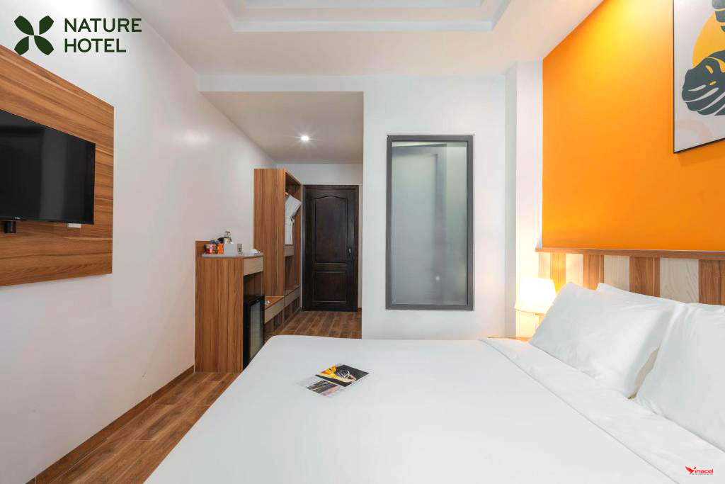 Nature Hotel đem đến cho du khách các phòng ngủ vô cùng ấn tượng. Nơi đây sử dụng thiết kế theo phong cách hiện đại, đi kèm với đó là sự kết hợp màu sắc tươi sáng, trẻ trung, được du khách rất yêu thích. Mỗi phòng ngủ đều được trang bị đầy đủ các tiện nghi cần thiết. Bạn cũng sẽ được tận hưởng khung cảnh tự nhiên trong lành qua khung cửa kính lớn được khách sạn tinh tế bố trí ở mỗi không gian nghỉ ngơi.