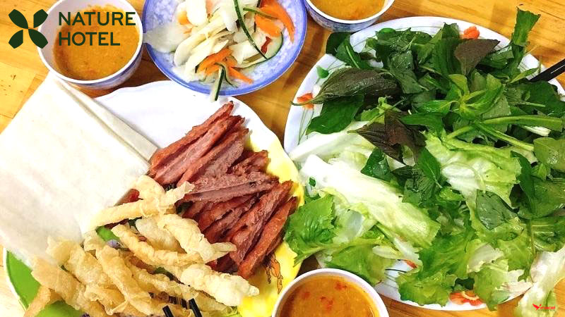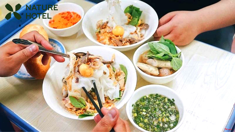 Phần bánh mềm, lòng gà và thịt gà đậm đà hòa quyện cùng phần nước mắm chua ngọt khiến nhiều du khách ăn một lần nhớ mãi.