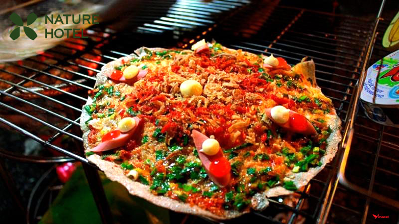 Phần bánh tráng nướng nóng, giòn hòa cùng phần nhân đậm đà từ xúc xích, trứng đã tạo nên một món ăn hấp dẫn. Món ăn này rất hợp với không khí Đà Lạt.