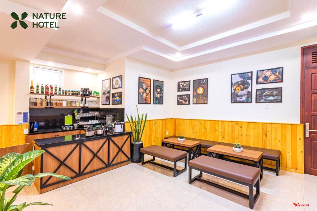 Thiết kế tối giản và hiện đại, kết hợp cùng những mảng xanh bao phủ, Nature Hotel không chỉ là nơi dừng chân mà còn là nơi bạn có thể tìm thấy cảm giác thư thái, tái tạo năng lượng. Đội ngũ nhân viên thân thiện, nhiệt tình sẵn sàng mang đến cho bạn những trải nghiệm đáng nhớ giữa cao nguyên lộng gió.