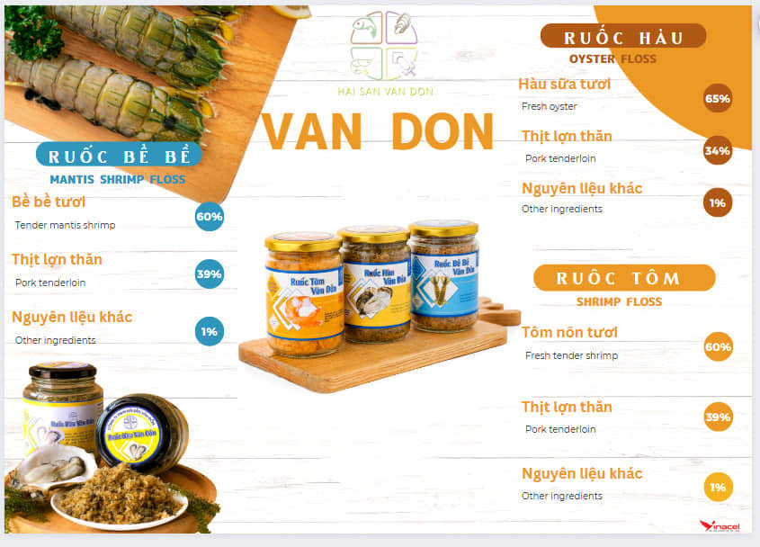 Ruốc tôm Vân Đồn của chúng tôi đảm bảo nguồn gốc từ tôm tươi của vùng biển Vân Đồn, Quảng Ninh. Qua quá trình lựa chọn, chế biến bao gồm các công đoạn bằng máy và thủ công để đảm bảo chất lượng sản phẩm tốt nhất cho khách hàng sử dụng. Ruốc tôm được đóng gói vào các lọ tiện dụng cho gia đình.