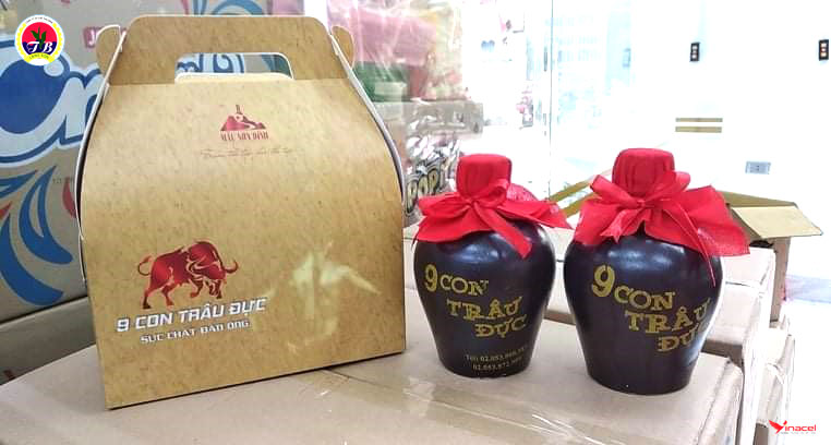 Mẫu Sơn Đỉnh 9 Trâu giúp bổ thận tráng dương, đẹp da, khoẻ cốt, tăng cường sinh lý cho cả nam và nữ. Được ngâm ủ từ rượu nếp cái hoa vàng và bài thuốc(sâm cau, ba kích, nhục thung dung, dâm dương hoắc, chuối rừng…) với công thức gia truyền trong thời gian 1 năm.