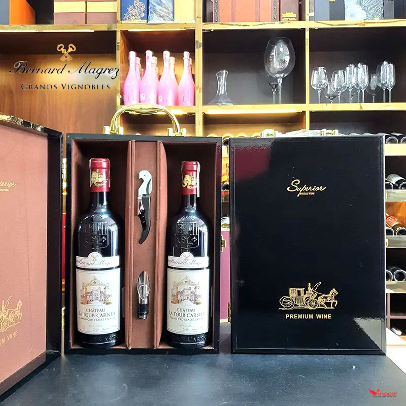 Rượu vang Pháp Chateau La Tour Carnet được nhà sản xuất kết hợp pha trộn giữa giống nho Merlot và Cabernet Sauvignon, rượu mang đầy đủ hương vị của những trái nho này, sở hữu một màu đỏ đậm óng ánh sang chảnh, quý phái cùng với thiết kế vỏ chai mang phong cách cổ điển, cuốn hút và sang trọng.