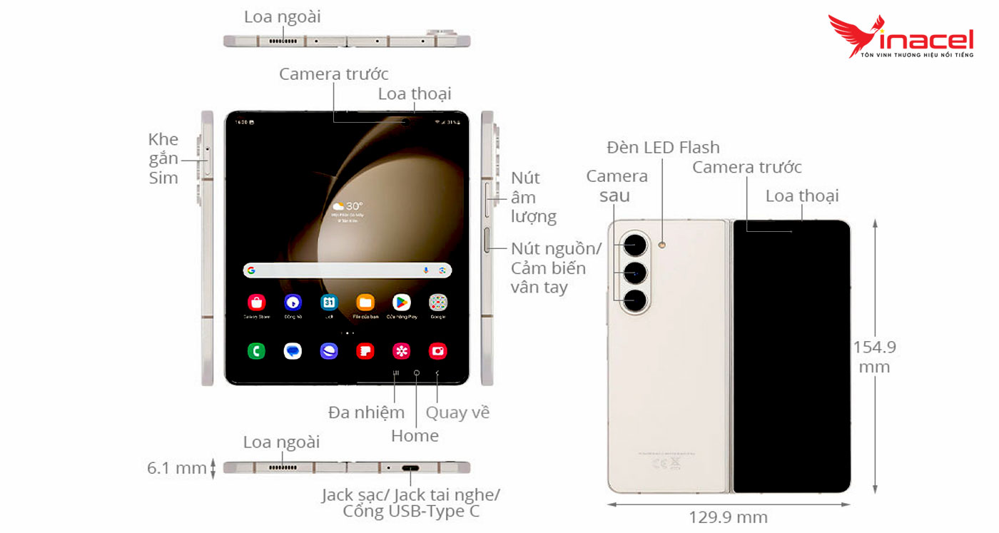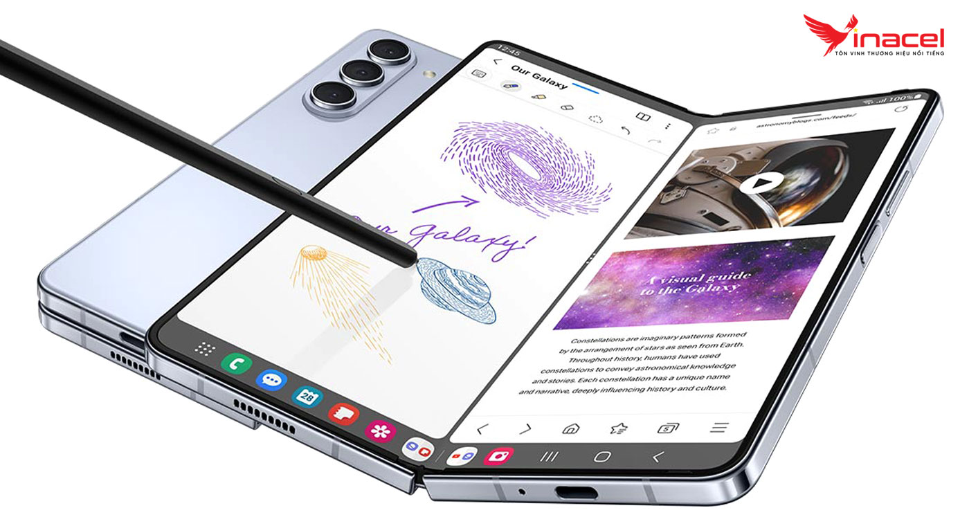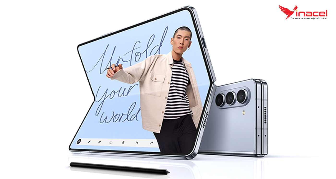 Galaxy Z Fold5 - vẫn thiết kế gập mở như một cuốn sách và phía sau máy là bộ ba ống kính camera được đặt dọc. Với kích thước nhỏ gọn khi gập lại, chiếc máy trở nên dễ dàng mang theo và cất giữ trong túi áo hay túi xách của bạn. Khi mở ra, Z Fold5 trở thành một chiếc tablet có màn hình to, mang đến trải nghiệm sử dụng rộng lớn và ấn tượng.