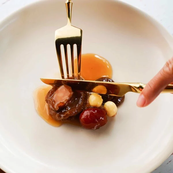 - Khi ăn bạn múc soup bào ngư hải sâm vi cá ra bát sau đó trang trí bào ngư 1 bên, hải sâm 1 bên, vi cá 1 bên, trang trí thêm rau cải bẹ xanh, măng tây vào giữa, rắc thêm chút hạt tiêu, rau mùi lên trên là được.