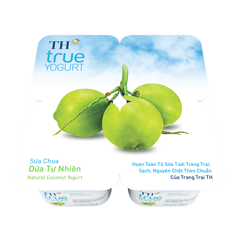 – Sữa chua TH True MILK dừa: Giá tham khảo: 28.000 VNĐ/4 hộp x 100g. Trong hộp sữa chua có những miếng dừa nhỏ thơm mát, ngọt dịu, giúp hỗ trợ sức khỏe hệ xương khớp, thị lực, chống viêm và làm đẹp da.