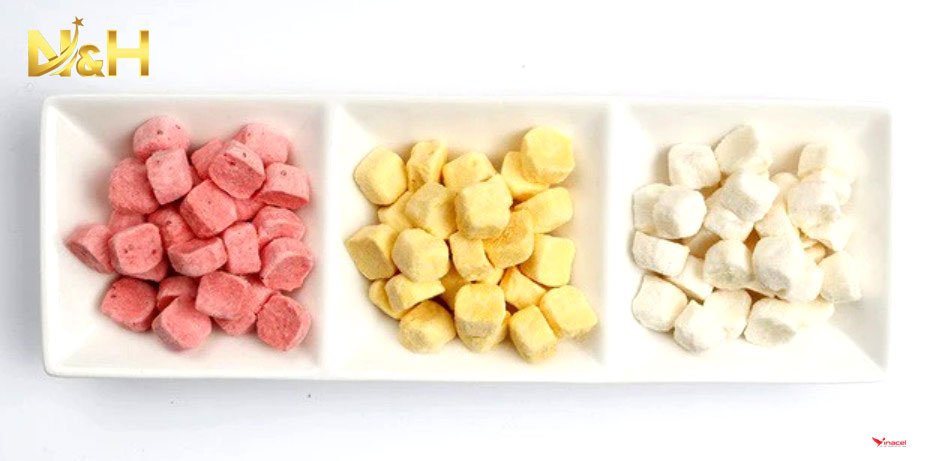 Thực chất sữa chua sấy khô là dạng sấy của sữa chua tươi nên sẽ không chứa các chất bảo quản như sữa chua nước thông thường, không chứa các chất hóa học có hại cho sức khỏe bé. Sữa chua sấy khô có kết hợp với các loại trái cây nên sẽ mang vị ngọt nhẹ và ngon hơn.