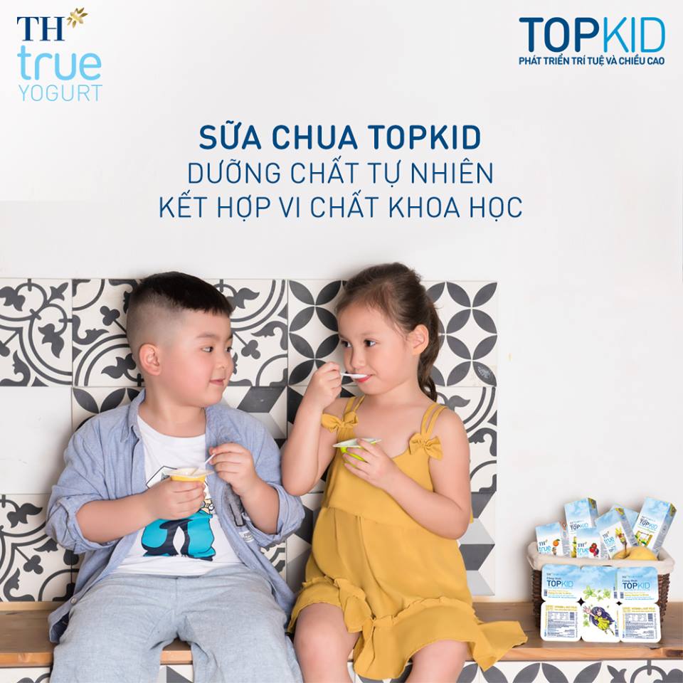 TH True Milk là một thương hiệu sữa dẫn đầu thị trường hiện nay với đa dạng nhiều sản phẩm mới. Trong đó, sữa chua uống Topkid là loại sữa dành cho trẻ nhỏ rất được các bà mẹ ưa chuộng. Hoàn toàn từ sữa tươi sạch nguyên chất của trang trại TH. Sản phẩm giàu dinh dưỡng với sự bổ sung Canxi, Vitamin nhóm B (B6, B12) và Axit Folic trong công thức TOP KID giúp hỗ trợ tối ưu sự phát triển chiều cao và năng lượng trí não của trẻ.